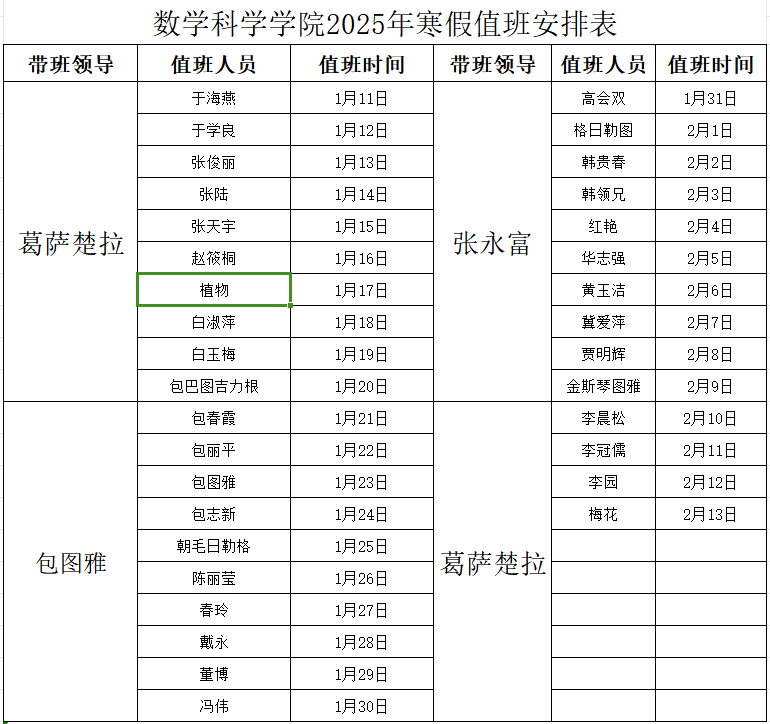 1.值班地点:值班教师所在办公室、教研室、实验室。