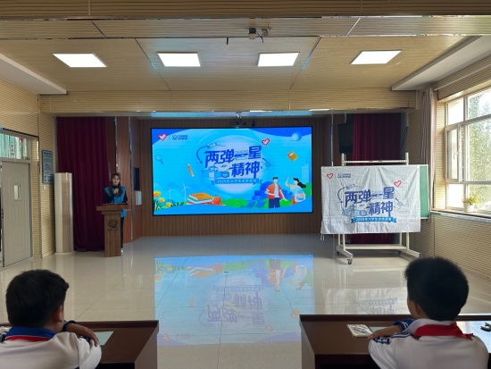 活动伊始,宣讲团成员郝雨轩通过一段视频,带领学生们回溯了“两弹一星”工程的峥嵘岁月。视频中展现了从1955年党中央作出发展核工业的战略决策,到1964年10月16日新疆罗布泊戈壁滩上升起的蘑菇云的珍贵历史画面。这些画面让孩子们直观了解到“两弹一星”的重大意义,以及老一辈科研工作者在国家经济困难、技术封锁的条件下自力更生的奋斗历程。