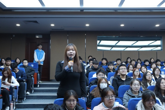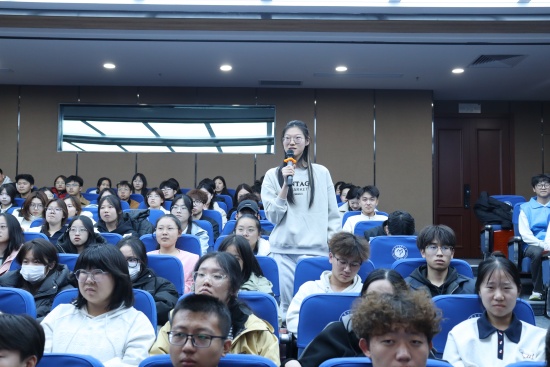 首先,数学科学学院秦鑫同学以“听两弹一星故事,寻青春新征程方向”为主题开启宣讲。她从贴近生活的核知识切入,用通俗易懂的语言讲解核技术在能源、医疗等领域的应用,打破了同学们对“核”的陌生感;随后,通过珍贵的历史资料和生动的人物故事,详细阐释了“两弹一星”精神中“热爱祖国、无私奉献,自力更生、艰苦奋斗,大力协同、勇于登攀 的核心内涵,带领学生们重温了那段攻坚克难、为国铸盾的峥嵘岁月;最后,秦鑫结合新时代青年的使命担当,呼吁同学们将个人理想与国家发展紧密结合,在学习科研中传承奋斗精神,在青春赛道上奋力奔跑。
