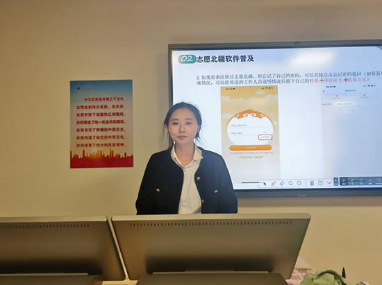 随后,青协负责人吉梦雨、姜雪、刘锦共同以“投身志愿实践,彰显青春担当”为主题,聚焦“志愿北疆”平台展开介绍。他们详细演示了平台注册、活动报名、时长记录等操作步骤,并结合学院过往开展的社区敬老、校园迎新、公益宣讲等特色志愿活动,让新生直观感受志愿服务的实践场景。同时,主讲人着重强调志愿时长既是评奖评优、综合素质测评的重要依据,更是个人社会责任感与实践能力的直观体现,呼吁新生主动投身志愿服务,在奉献中锤炼品格、增长才干。
