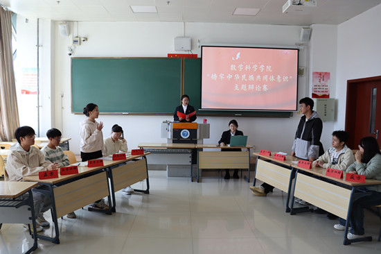 为引导广大学生自觉铸牢中华民族共同体意识,提升学生思辨能力和语言表达能力,3月26-29日,数学科学学院分别在实验楼302室、知行楼515室开展“铸牢中华民族共同体意识”主题辩论赛。本次比赛共十支队伍参加。由学工办主任朝毛日勒格、团总支副书记香荣、团总支成员王箫、潘毅萱担任评委。