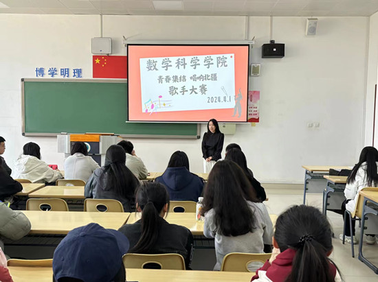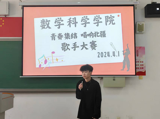 为进一步丰富校园文化生活,促进学生全面发展,营造积极向上、健康文明的校园文化氛围,4月1日,数学科学学院于西拉木伦校区实验楼208室举办“青春集结 唱响北疆”歌手大赛。学工办主任朝毛日勒格、团总支副书记香荣、校企辅导员李耀鹏担任评委。比赛由娄宇轩同学主持。