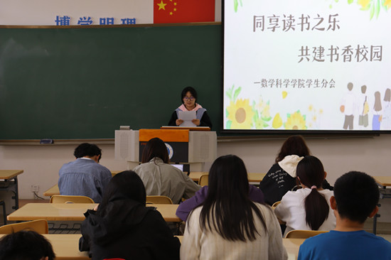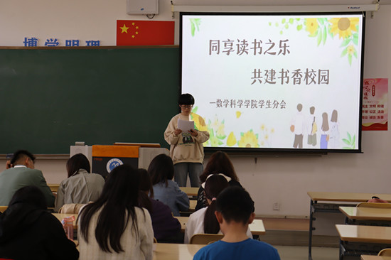 在世界读书日即将来临之际,为进一步铸牢中华民族共同体意识,营造爱读书、读好书、善读书的书香校园氛围,4月18日上午,数学科学学院在实验楼201举办了“同享读书之乐 共建书香校园”读书心得分享比赛。