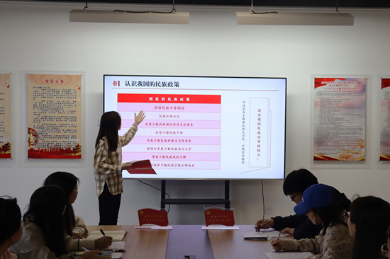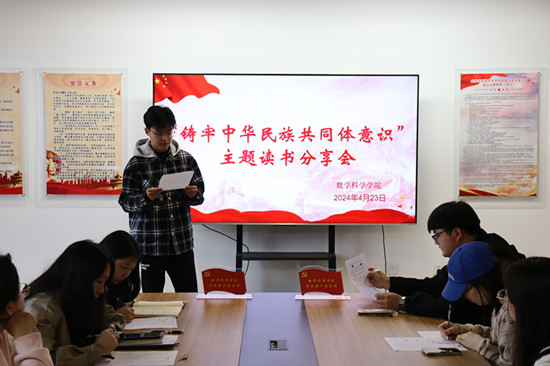 读书分享会上,同学们围绕“铸牢中华民族共同体意识”主题,通过诵读习近平总书记著作选段、习近平总书记经典语录,阅读经典名著书籍,讲红色故事、民族团结故事等,分享交流了自己的心得体会和所感所悟,引发了在场师生的深刻共鸣,大家纷纷表示,在今后的学习、工作和生活中要认真学习中华优秀传统文化,牢固树立“四个与共”,不断增强“五个认同”,勇担时代责任,努力争做铸牢中华民族共同体意识的学习者、宣传者和实践者。