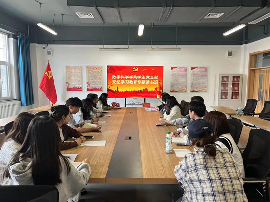 为进一步加强学生党支部的建设,提高支部党员的纪律意识和规矩意识,5月6日,数学科学学院学生党支部在学院A515会议室开展了党纪学习教育专题读书班活动。学生第一党支部、学生第二党支部在校生全体学生党员及部分入党积极分子参加。