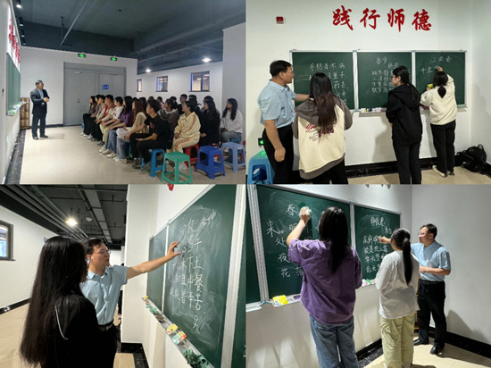 为进一步提高我院师范生板书书写能力,夯实教学基本功,5月9日,数学科学学院在西拉木伦校区知行楼五楼板书练习区域举办板书培训活动。本次培训邀请文学与新闻传播学院周坤老师担任主讲,学院院长吴校良、学生党支部书记朝毛日勒格、香荣及2022级数学2班全体同学参加。活动由学院党委书记葛萨楚拉主持。