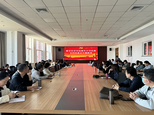 4月24日下午,数学科学学院在西拉木伦校区知行楼A517会议室开展铸牢中华民族共同体意识专题教育。学院领导班子成员以及全体教职工参加会议。会议由学院党委书记葛萨楚拉主持。