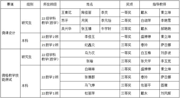 本次活动由来自陕西师范大学、华中师范大学、湖南师范大学等全国100多所高校4000名学生参赛,参赛院校和选手数量均创历史最高。经过教学设计、现场授课和现场答辩等赛事环节,我院参赛选手经过激烈角逐,最终荣获微课设计一等奖2项、二等奖1项、三等奖2项;微格教学技能一等奖1项、二等奖1项、三等奖4项。