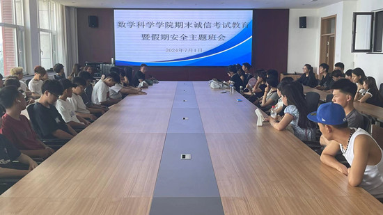 为进一步加强考风考纪教育,培养学生诚信考试意识,同时做好我院学生暑假期间的安全教育,6月25日—7月1日,数学科学学院各班级召开诚信考试教育暨假期安全主题班会。
