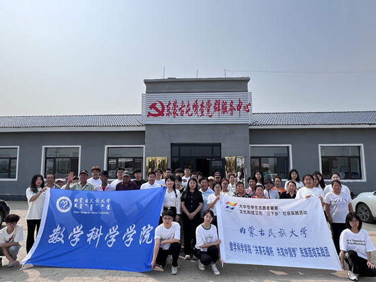 为深入学习宣传贯彻习近平新时代中国特色社会主义思想,铸牢中华民族共同体意识,促进各民族像“石榴籽”一样紧紧拥抱在一起,传承弘扬中华优秀语言文化,引导和帮助广大青年学生在社会课堂中受教育、长才干、作贡献。7月11日至12日,数学科学学院“共育石榴籽 共筑中国梦”民族团结实践团先后赴通辽市科尔沁左翼中旗花吐古拉镇东蒙古屯嘎查、通辽市科尔沁左翼中旗花吐古拉镇韩家窝堡村、通辽市科尔沁左翼中旗花吐古拉镇孝庄园文化景区开展为期两天的暑期“三下乡”社会实践活动。活动由数学科学学院团总支副书记香荣老师、辅导员格日勒图老师带队参加。