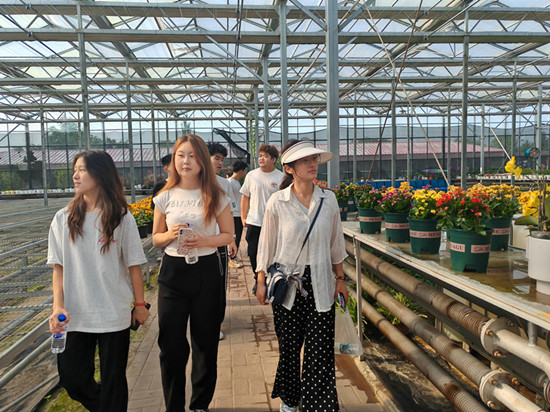 7月13日上午,首先实践团队员在知行楼A515室集中学习了习近平总书记给中国农业大学科技小院的同学们回信精神,并进行了学习心得交流。随后实践团队员来到通辽市辽河镇平安堡村庆云农业科技有限公司进行调研学习。在庆云农业科技有限公司刘经理的带领下,实践团队员参观了花卉养殖基地、采摘园区、陶器制作地,刘经理向队员们介绍了农业基础设施情况、花卉种植品类、现代农业种植、智能温室管理、生态循环农业等情况。接着,实践团队员对花卉养殖基地工作人员进行了调研,更深刻的体会到了丰收背后的艰辛。