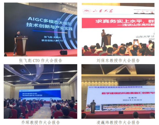 会议首天开幕式后举行了4场大会报告,分别是无界 AI 联合创始人兼CTO张飞彪先生的“AIGC 多模态大模型技术创新与产业实践”、山东大学刘保东教授的“求真务实上水平群策群力谋发展--浅谈山东高校数学建模活动的探索与实践”、西安交通大学乔琛教授的“数学建模中的常用机器学习模型”和江西应用技术职业学院凌巍炜教授的“数学建模的科教赛融汇创新与实践”。专家们的报告聚焦当下热点问题,关注研究前沿动态,内容丰富精彩,团队教师受益匪浅。