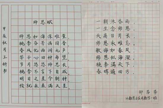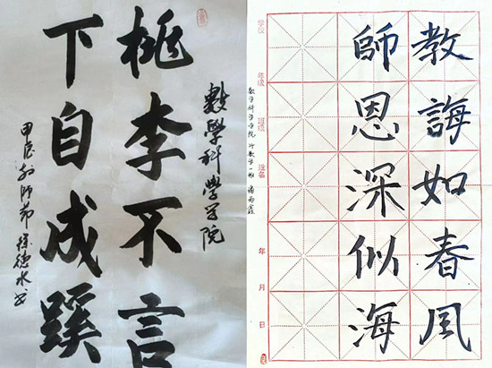 在我国第40个教师节来临之际,为营造尊师重教的校园风尚,数学科学学院于9月4日—8日开展了“师恩如海 笔墨传情”书法作品征集活动。