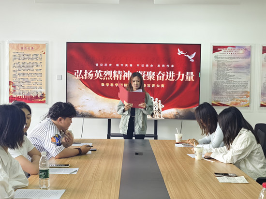 为弘扬英烈精神,赓续红色血脉,营造缅怀英烈,崇尚英烈的浓厚校园氛围,9月19日,数学科学学院在西拉木伦校区知行楼A515室举办“弘扬英烈精神 凝聚奋进力量”主题英烈事迹宣讲大赛。