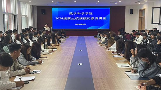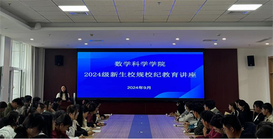 数学科学学院于2024年9月20日9:00-11:00在知行楼A517会议室对新生开展校规校纪主题教育讲座。此次讲座由学院学工办主任朝毛日勒格和辅导员赵筱桐主讲。
