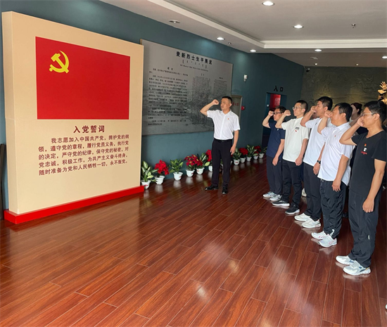 在讲解员的引导下,党员们认真观看历史照片,仔细聆听故事讲解,一张张黑白老照片,一份份发黄的历史资料带回了那段风雨摇晃、战火纷飞的革命岁月。随后,全体党员重温入党誓词,更加坚定了“感党恩 听党话 跟党走”履行新时代使命任务的决心。