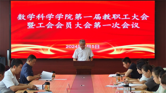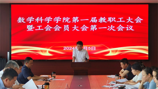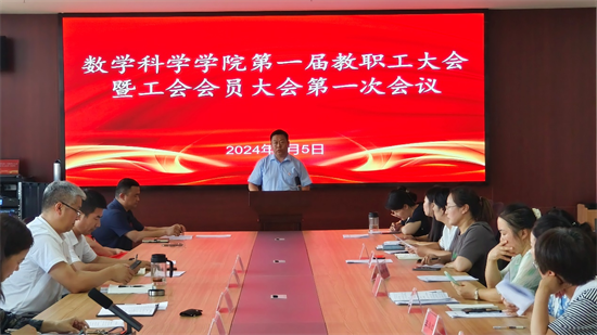 7月5日下午,数学科学学院第一届教职工大会暨工会会员大会第一次会议在知行楼5楼A517会议室召开,学院全体教职工参会,大会由学院党委副书记包图雅主持。