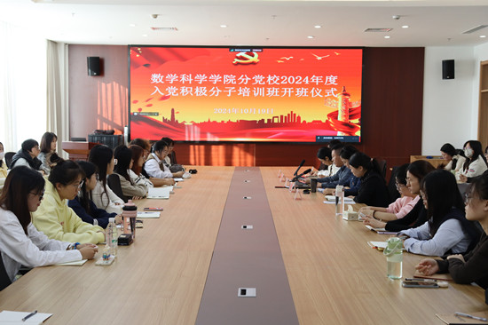 为深入学习贯彻习近平新时代中国特色社会主义思想和党的二十届三中全会精神,切实做好入党积极分子的培养教育工作,提升党员发展质量,10月19日上午,数学科学学院分党校在知行楼A517会议室开展2024年度入党积极分子培训班开班仪式。数学科学学院党委书记葛萨楚拉、副书记包图雅、学生第二党支部书记香荣、研究生党支部书记赵筱桐以及2024年度57名入党积极分子参加开班仪式。仪式由学生第一党支部书记朝毛日勒格主持。