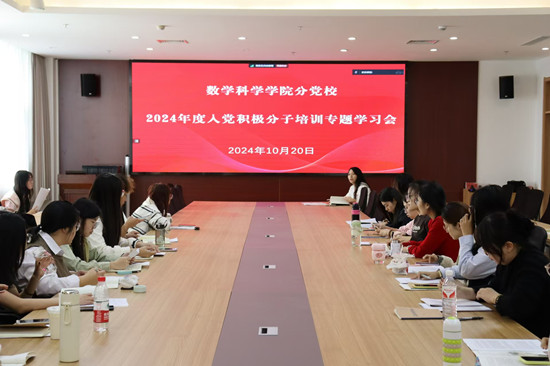 为进一步提高我院入党积极分子的政治理论素养,端正其入党动机,10月20日下午,数学科学学院在知行楼A517会议室开展入党积极分子培训专题学习会,学生第一党支部书记朝毛日勒格及57名入党积极分子参加本次学习会。