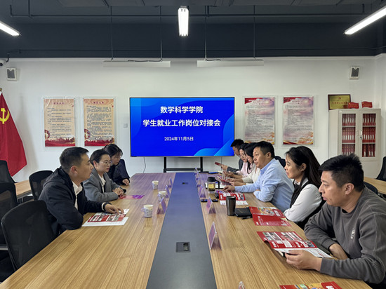 为进一步拓宽毕业生就业渠道和资源,全力促进我院毕业生更加充分更高质量就业,11月5日下午,数学科学学院邀请牧原食品股份有限公司召开学生就业工作岗位对接会,会议在知行楼A515会议室举行。牧原食品股份有限公司蒋显双、王箴言、孟祥南,学院党委书记葛萨楚拉、党委副书记包图雅及全体辅导员参加会议。
