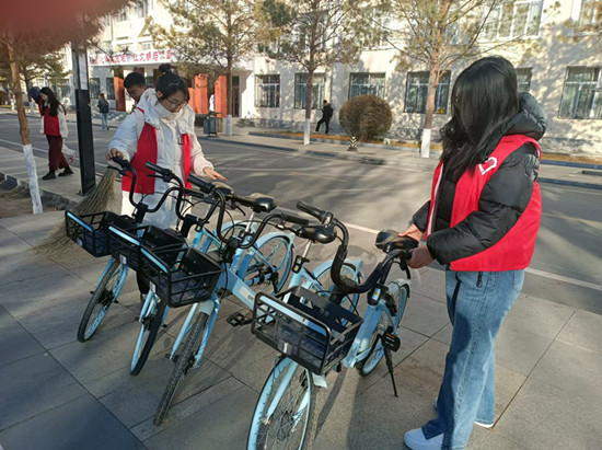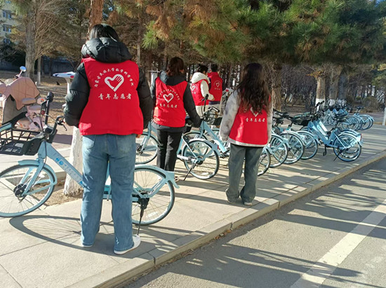 活动现场,志愿者们在学院青年志愿者协会负责人的指挥下迅速分成两个小组,分别开展了志愿服务活动。一组志愿者负责清理学院分担区,他们手持扫帚、垃圾袋等工具,对分担区内的垃圾进行了全面清理。另一组志愿者则负责摆放滨河园区共享单车。他们穿梭在校园内的各个角落,将随意停放的共享单车整齐地摆放在指定区域。志愿者们不仅将单车摆放得井井有条,还耐心地向过往的同学宣传共享单车的正确使用方法,倡导大家共同维护良好的校园交通秩序。