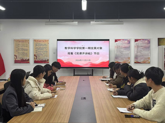 为进一步加强对发展对象的培养教育,提升其政治理论素养和党性修养,11月21日晚上,数学科学学院在西拉木伦校区知行楼A515会议室组织发展对象观看《党课开讲啦》节目,学院学生第一党支部书记朝毛日勒格及学院第一期发展对象参加。