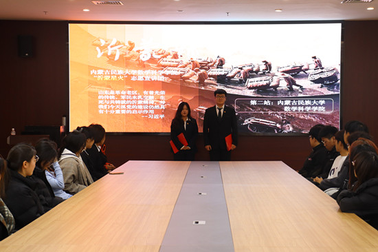 2024年12月3日,数学科学学院“沂蒙星火”志愿宣讲团在知行楼A517会议室开展“沂蒙精神”主题宣讲活动。本次活动由宣讲团成员黄莹、李卓翰担任主讲。