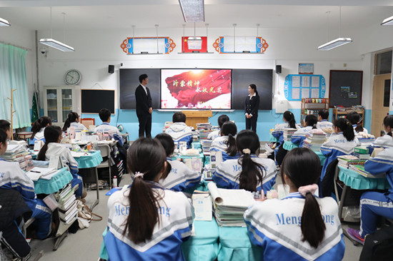 “最后一把米做军粮,最后一块布做军装,最后一个儿子送战场”,爱党爱军、无私奉献的沂蒙精神始终激励着一代又一代中华儿女奋勇前行。为了进一步传承红色基因,弘扬沂蒙精神,厚植广大学生爱党、爱国、爱社会主义的深厚情感,引导学生们深入学习党的光辉历史和优良传统,数学科学学院“沂蒙星火”志愿宣讲团于2024年12月18日赴通辽蒙古族中学开展沂蒙精神主题宣讲活动。