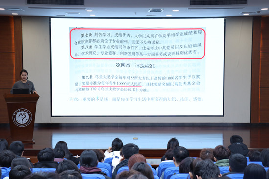分享会上,国家奖学金获得者白琳琳、乌兰夫奖学金获得者何美丽、自治区奖学金获得者刘润雪、柳小于、刘薛镁等五位同学结合自身学习经验、学习方法及深刻的学习感悟体会,从时间管理的高效策略、以赛促学的重要价值与深刻内涵、社会实践的多元探索等多维度视角出发,分享了各自的宝贵经验,为在场的同学们带来了深刻的启迪与思考。