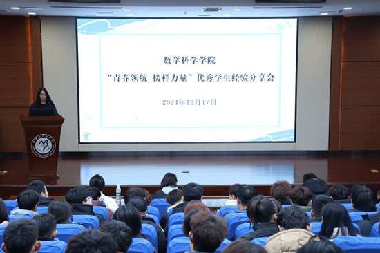 为扎实推进学风建设,充分发挥优秀学生的榜样引领作用,12月17日,数学科学学院在图书馆小报告厅举办“青春领航 榜样力量”优秀学生经验分享会。学院党委副书记包图雅、全体辅导员及2024级全体同学参加。分享会由学工办主任朝毛日勒格主持。