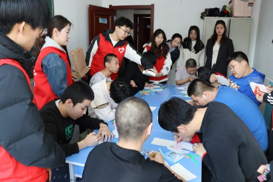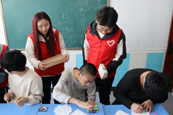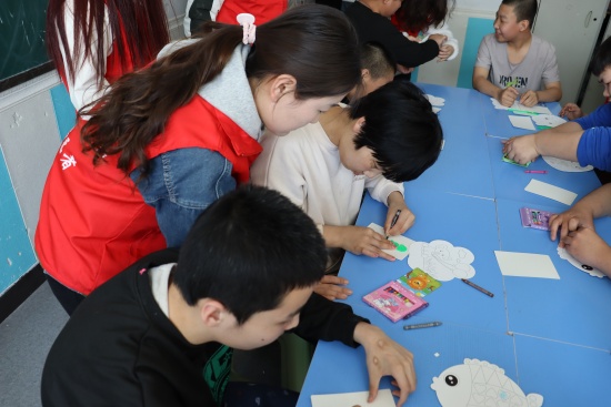 学生志愿者们为通辽市康安医院康复科里的孩子们精心准备了蒙古舞蹈《走马》和手势舞《微微》。在活动现场,《走马》这一段欢快的舞蹈吸引了孩子们的注意力。手势舞《微微》,也让很多孩子自如的跟着背景音乐随着志愿者们一起舞动。在趣味游戏环节,志愿者们组织各自小组的孩子们拼拼图、画画。教室里充满了孩子们的欢声笑语,志愿者们也完全融入其中,耐心地引导和陪伴每一位参与游戏的孩子,帮助他们更好地完成拼图和画作,鼓励他们积极表现,让孩子们在游戏中收获快乐和自信。