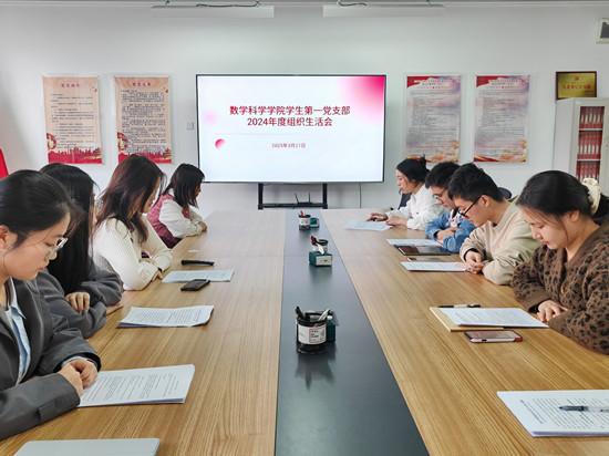 3月21日,数学科学学院学生第一党支部在知行楼A515会议室召开2024年度组织生活会暨民主评议党员大会。会议由党支部书记朝毛日勒格主持,支部全体党员参加。