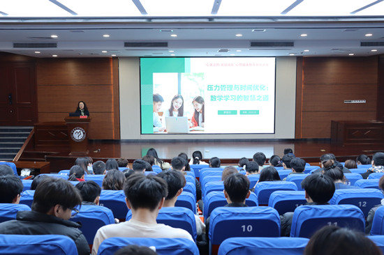 讲座伊始,萨茹拉以轻松的切土豆解压活动拉近了与同学们的距离。从数学学习的重要性、压力与时间管理在数学学习中的关键作用等方面切入,深入浅出地给大家讲解了数学中常见的压力来源、有效地压力管理技巧、时间管理策略、优化学习流程等内容,并结合自身学习经历、生动的案例让同学们深刻认识到心理健康对个人成长和发展的重要性。讲座结束后,萨茹拉对如何预约和咨询心理健康方面问题提供了宝贵的意见和建议。