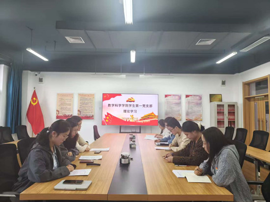 3月21日,数学科学学院学生第一党支部在知行楼A515会议室召开理论学习会,会议由支部书记朝毛日勒格主持,支部全体党员参加。