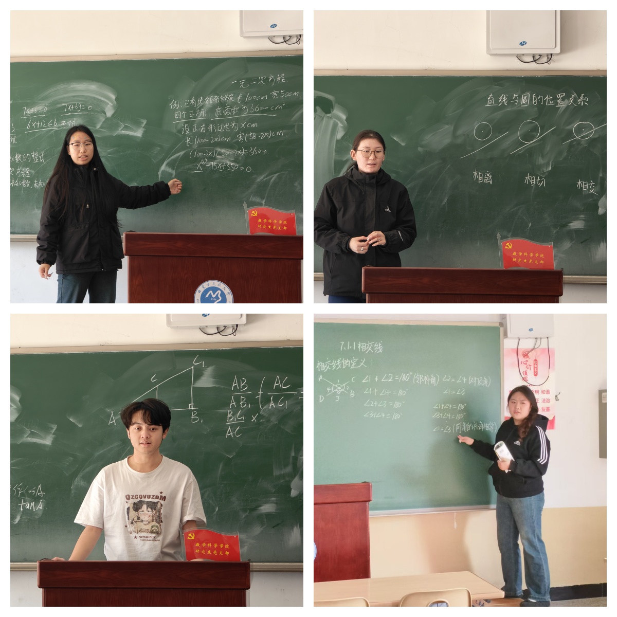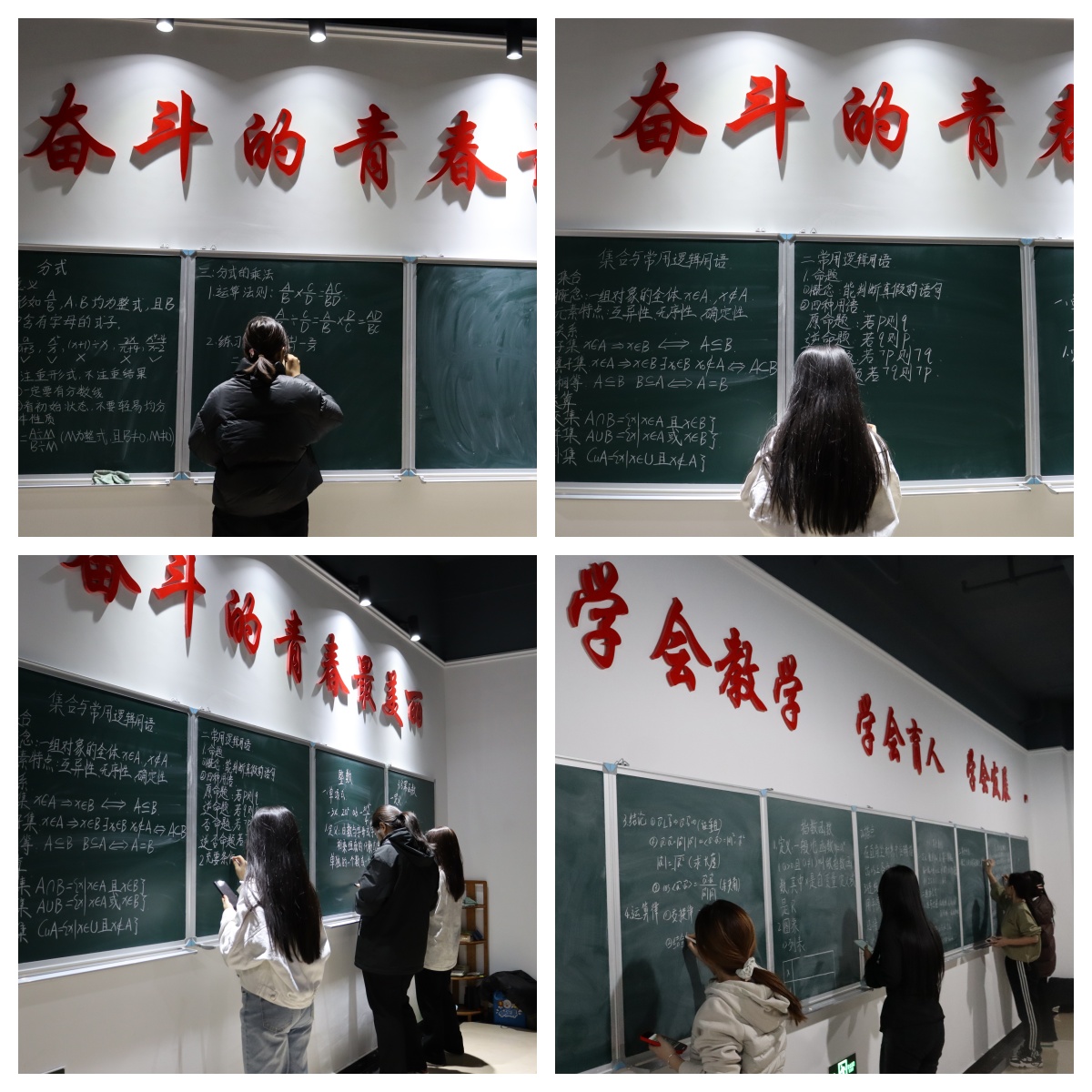 “三个一”专业技能提升活动是学院党建工作与业务工作高度融合的具体措施,由学院本科生党支部、研究生党支部牵头落实。本学期活动参与学生包括23级和24级所有同学,其中,“每日一读”依托学习通APP发布《铸牢中华民族共同体意识学习问答》相关内容;“每周一练”粉笔字专项练习为中学阶段课本板书设计内容;“每月一讲”师范生上讲台专项练习内容中为23级学生增加了小组讨论以及说课练习。