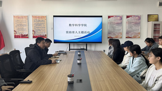 为深入贯彻落实国家资助政策,充分发挥资助育人功能,4月29日,数学科学学院在知行楼A515会议室开展资助育人主题活动,学院辅导员格日勒图、李耀鹏及各年级受助学生代表参与活动。