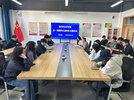 为确保学生度过安全、愉快的五一假期,强化假期安全防范意识,4月26日—4月29日,数学科学学院组织全院各班级召开五一假期安全教育主题班会。学院辅导员、班主任深入班级,围绕出行安全、防溺水、网络安全、心理健康等重点内容开展教育,为学生假期安全筑牢防线。