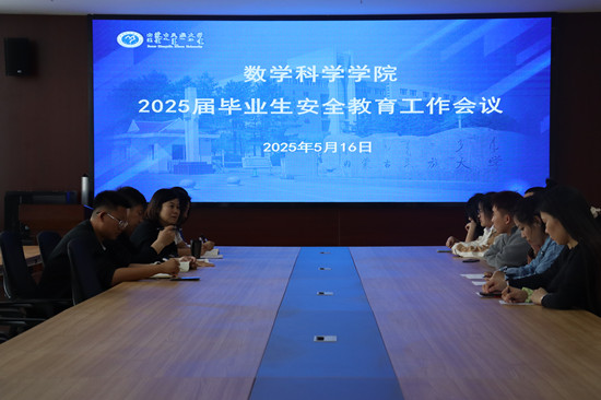 为切实增强2025届毕业生的安全防范意识,确保毕业生安全、有序地度过毕业阶段,5月16日,数学科学学院在知行楼A517会议室召开2025届毕业生安全教育工作会议。学院党委副书记包图雅、毕业班辅导员以及在校2025届毕业生参加了会议。