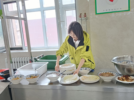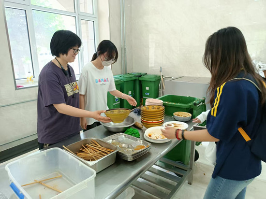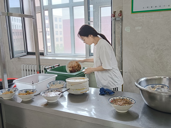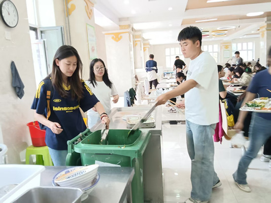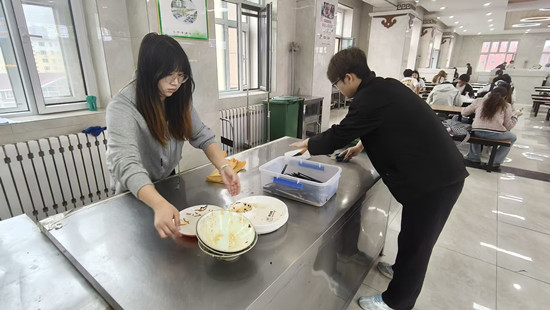 活动伊始,食堂工作人员对同学们详细讲解了食品安全规范、餐具清洗流程、餐台消杀标准、就餐秩序维护等工作内容和注意事项。随后,同学们分工协作,餐具回收处大家不怕脏、不怕累,有序地将餐具分类放置,并认真完成清洗、消毒工作;就餐区域及时清理餐桌残渣、擦拭桌面,同时还主动引导同学们文明就餐、按需取餐,践行“光盘行动”。劳动过程中,党员、入党积极分子充分发挥先锋模范作用,分工明确、配合默契,以饱满的热情和认真负责的态度完成每一项任务。