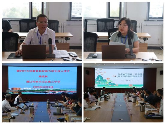 本次研讨会聚焦数学专业人才培养核心议题,精心设计“专题报告”与“专家研讨”双轨并行的学术架构。在5月24日下午的专题报告环节,通辽市基础教育领域8位资深教育工作者分别围绕“新时代数学教育人才协同培养机制”“师范生实习指导体系创新”“中学班主任工作与德育融合实践”“数学学科核心素养培育路径”“AI技术赋能数学智慧课堂建设”等前沿议题展开深度剖析。专题报告会由孟丽娟副校长和杨成林书记主持。