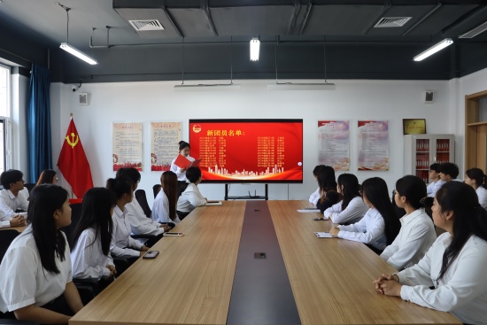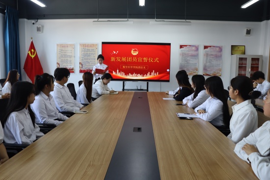 6月11日中午12点,数学科学学院2025年新发展团员入团仪式在知行楼A515举行。赵筱桐老师、团总支各委员、优秀团员代表以及全体新团员齐聚一堂,共同见证这一光荣时刻。本次入团仪式由团总支文体委员娄宇轩主持。