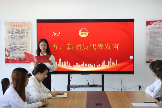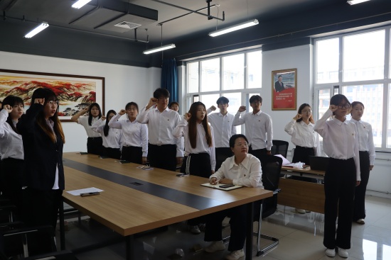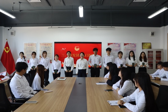 在热烈的掌声中,赵筱桐老师为每一位新团员颁发团员证并佩戴团徽,一枚枚团徽闪耀着青春的光芒,象征着新团员正式成为共青团这个大家庭的一员。团总支宣传委员王馨月带领新团员面向团旗庄严宣誓,铿锵有力的誓言表达了新团员对共青团组织的无限忠诚和为共产主义事业奋斗的坚定决心。