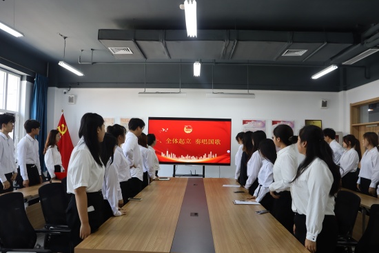 仪式在庄严的国歌声中拉开帷幕,全体与会人员起立,奏唱国歌,现场气氛庄严肃穆。随后,团总支文体委员娄宇轩宣读入团名单,新一批优秀青年光荣加入共青团。