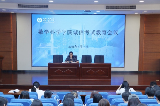 为了强化考风考纪,提升学生诚信考试意识,2025年6月13日,数学科学学院在图书馆小报告厅召开了三场诚信考试教育会议。学院党委副书记包图雅、全体辅导员以及22级、23级、24级全体在校学生参加。