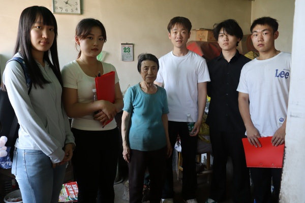 宣讲结束后,团队成员分别进行了慰问老人和村内街道垃圾清理活动。团队成员携带米、油等慰问品走访村中孤寡老人,了解生活需求,关心老人健康状况。最后团队成员利用清洁工具对村内道路及公共区域进行了清扫,改善村容村貌。