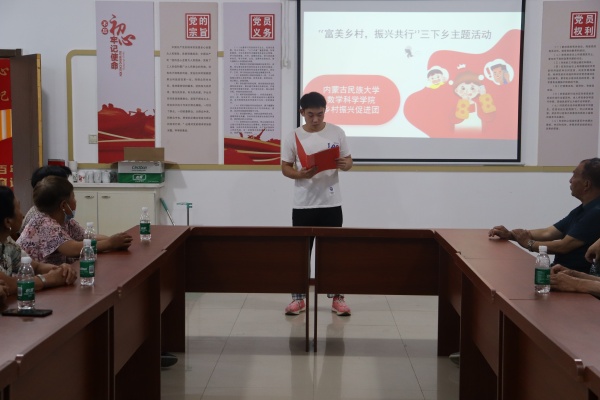 为深入学习贯彻习近平新时代中国特色社会主义思想,贯彻落实习近平总书记关于青年工作的重要思想,同时深入贯彻落实乡村振兴战略,铸牢中华民族共同体意识,2025年6月29日下午3点,内蒙古民族大学数学科学学院乡村振兴促进团19名学生在通辽市科尔沁区河西村2号村村委会开展“富美乡村,振兴共行”主题三下乡社会实践活动。活动涵盖防诈骗宣讲、乡村振兴政策宣传、慰问老人及清理环境垃圾等内容,得到村民的积极响应。