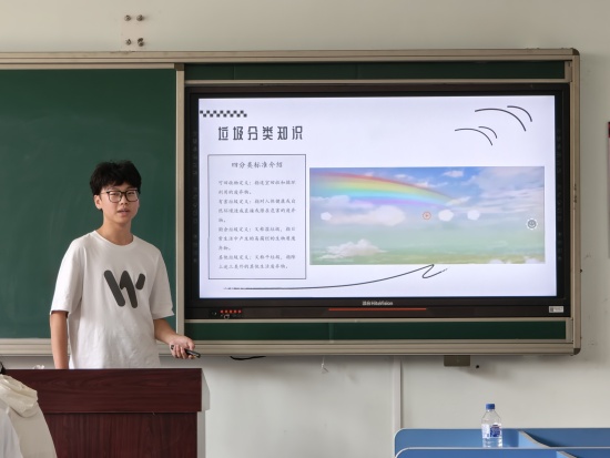 与此同时,“绿色发展”主题宣讲在另一活动室有序展开。宣讲人朱佳轩同学通过列举河流污染、大气污染等现实污染实例,让同学们直观认识到保护环境的紧迫性。他重点讲解了垃圾分类知识,并组织垃圾分类小游戏。寓教于乐的形式,不仅让同学们掌握分类方法,更树立起“绿色生活从我做起”的环保意识,助力乡村生态理念传播。随后,“科技创新”宣讲拉开帷幕。宣讲人关爱同学为同学们展示我国航天、人工智能等领域前沿科技成果,现场演示“会跳舞的盐”小实验,盐粒随声音震动在保鲜膜上跳动的神奇现象,引得同学们惊叹连连。活动尾声,宣讲团分发植物盲盒与科技小制作纪念品,前者承载绿色希望,让同学们在观察植物生长中体会生命意义;后者激发科学探索热情,点亮乡村学子的科技梦想。