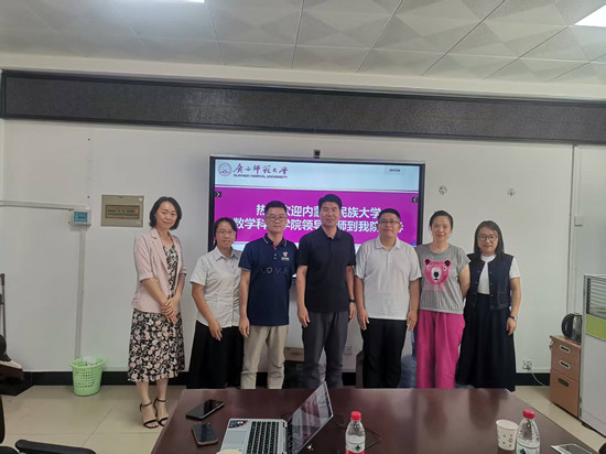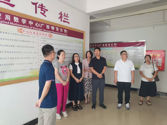 随后,团队赴广西师范大学数学与统计学院进行考察,在院长助理晏振教授的陪同下,调研团队实地参观了数学实验室的建设布局与运行情况,重点了解了实验室在课程教学、科研支撑及学生教学实践能力培养等方面的经验做法。双方就实验室管理机制、资源共享模式及人才培养等内容进行了深入研讨。