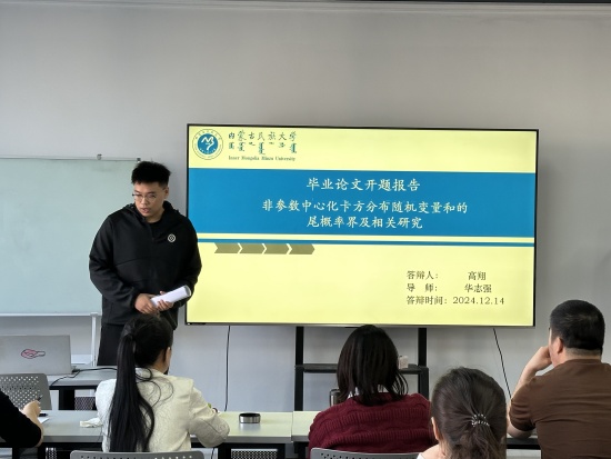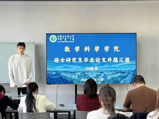 2024年12月15日,学院在西拉木伦校区知行楼A509和C501召开了2023级数学专业硕士研究生开题报告会。学院学硕导师、研究生参加了报告会,报告会由王淑红教授和张永富副院长分别主持。